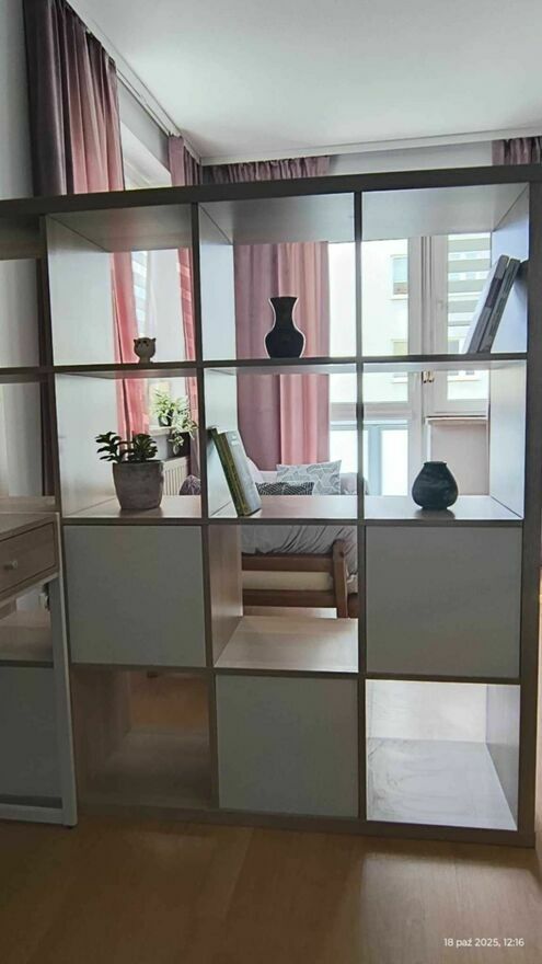 • Przestronny pokój (22 m²) – jasny, przytulny i dobrze zorganizowany, częściowo podzielony regałem Kallax.
