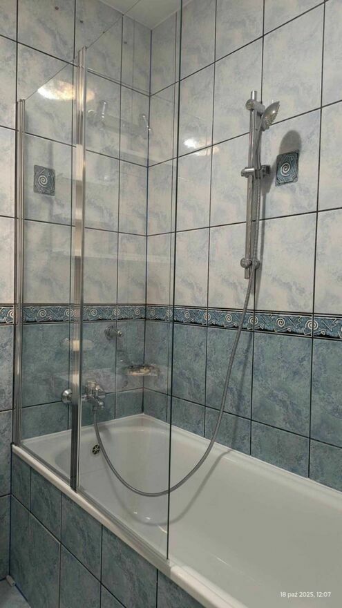 • Łazienka z wanną i prysznicem, toaletą, nową pralką i praktycznymi szafkami.