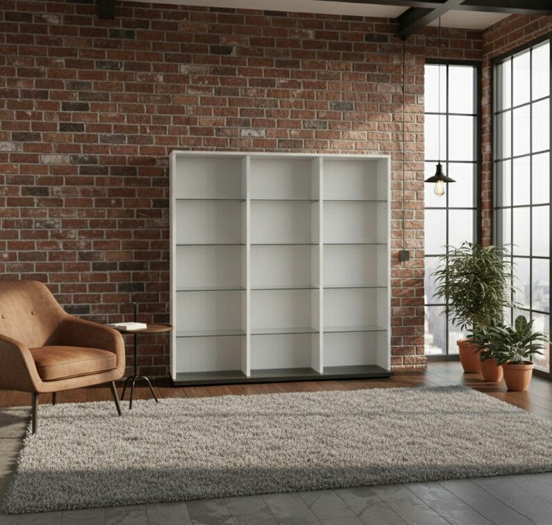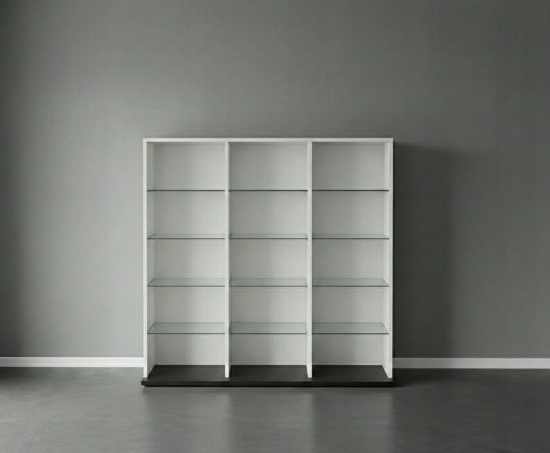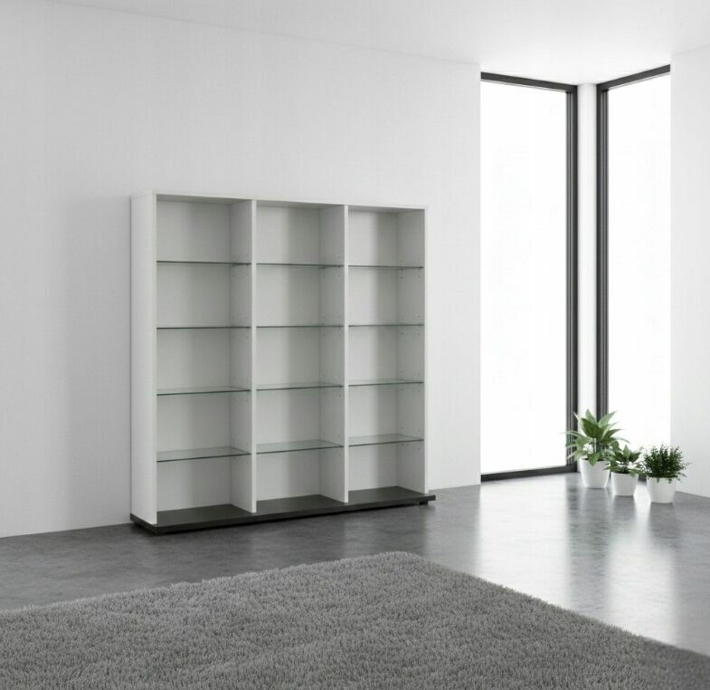Elegancja i Przejrzystość Nasz regał to połączenie minimalistycznej bieli korpusu z hartowanym szkłem, co nadaje meblowi wyjątkowej lekkości. Szklane półki sprawiają, że kolekcja płyt wydaje się "zawieszona" w powietrzu, co optycznie powiększa przestrzeń i dodaje wnętrzu nowoczesnego sznytu.
