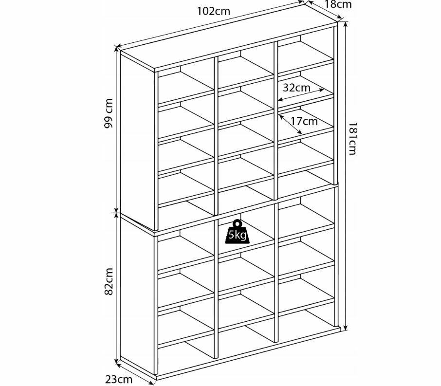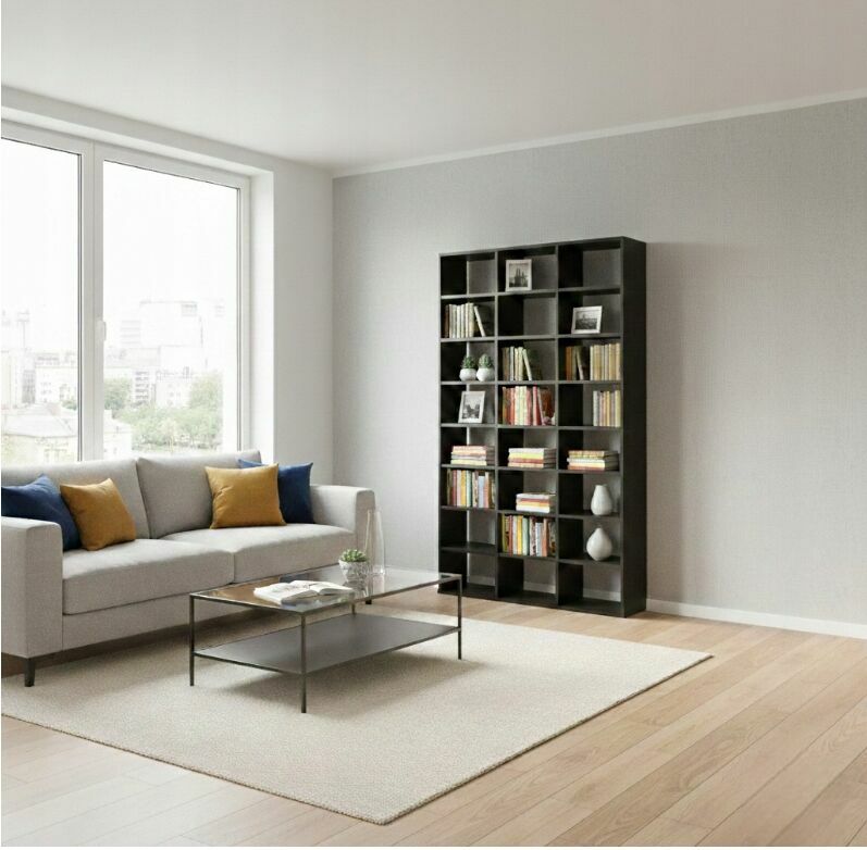 Wybierając ten regał, zyskujesz gotowe rozwiązanie do przechowywania w najbardziej poszukiwanym zestawieniu kolorystycznym (dąb/czerń). Dzięki wysokości 181 cm maksymalnie wykorzystujesz przestrzeń w pionie, zachowując jednocześnie porządek i przejrzystość swoich zbiorów.