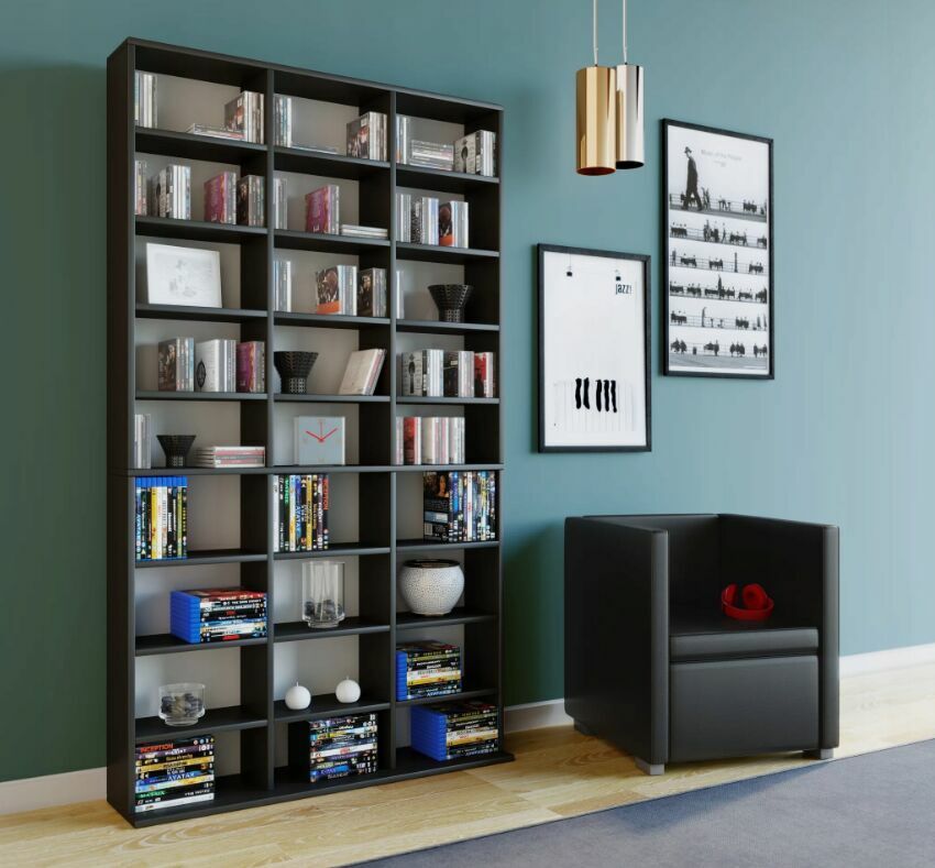 Regał VCM Megosa Maxi to oszczędzająca miejsce szafka, która pomieści nawet najbardziej rozbudowane zbiory multimediów: