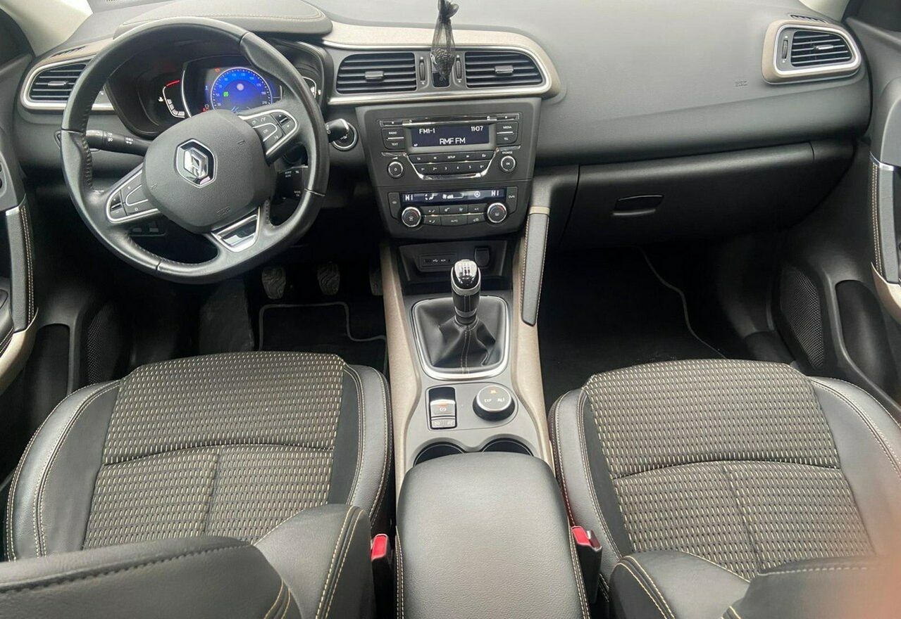 RENAULT KADJAR z 2016 roku – praktyczny, kompaktowy SUV z dynamicznym silnikiem benzynowym 1.2 TCe o mocy 130 KM, manualna skrzynia biegów, bogate wyposażenie i komfort jazdy.