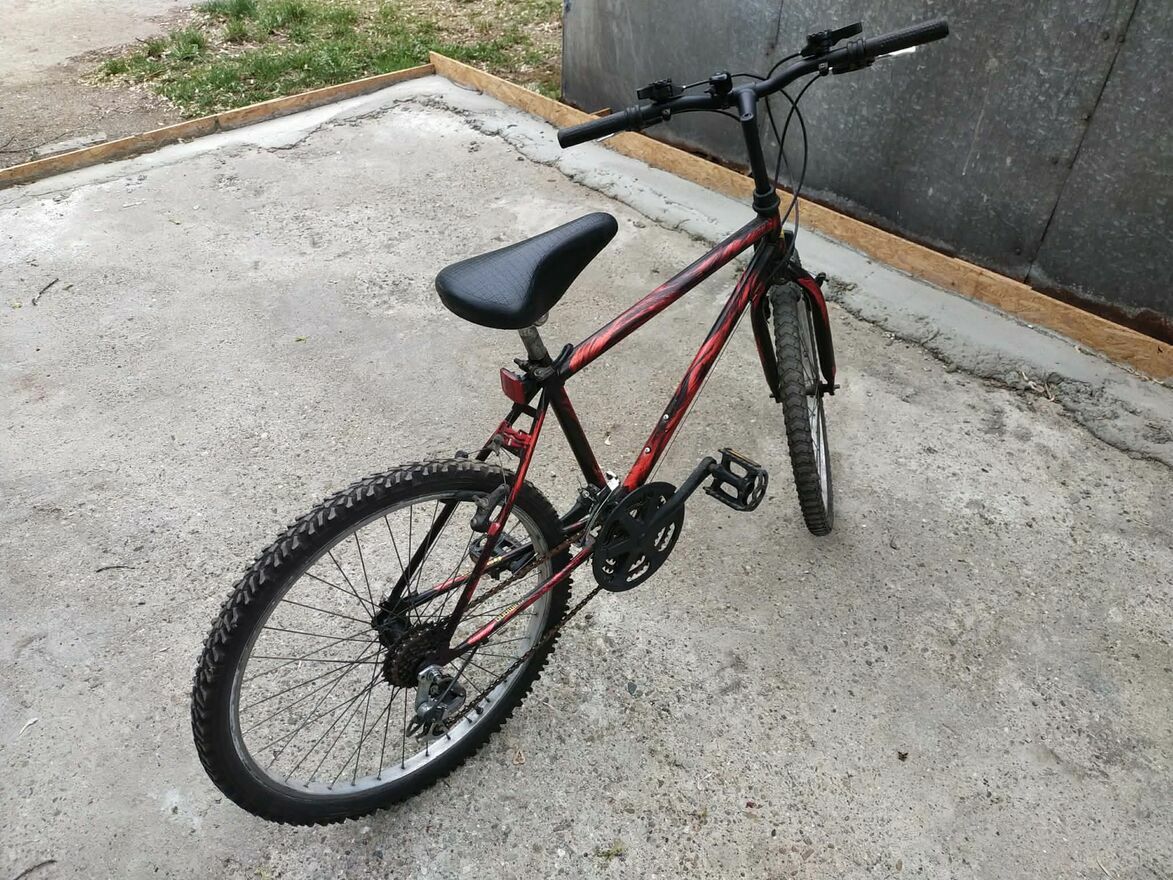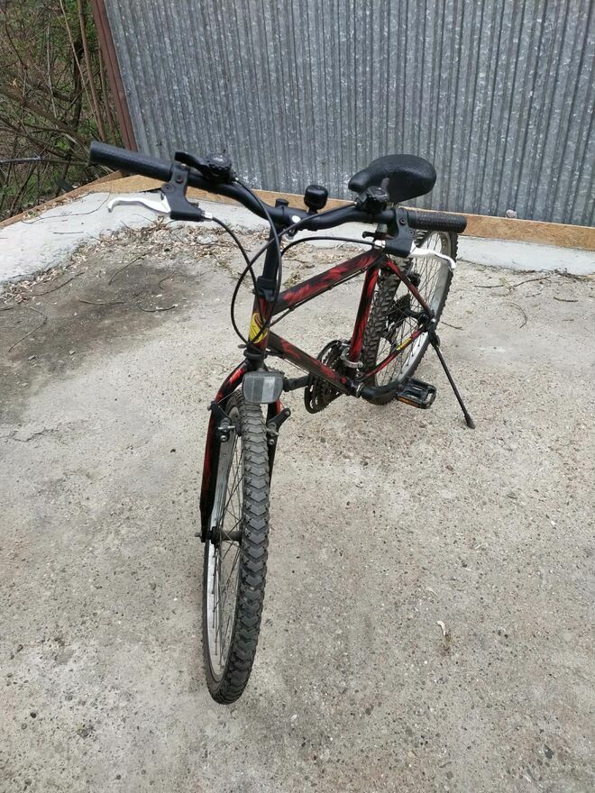 Mam do sprzedania rower górski MTB w kolorze czarno-czerwony o charakterystycznym malowaniu typu ''płomienie". Stan oceniam na dobry. Posiada: osprzet shimano, dzwonek, podnozek, przerzutki 3x6, miejsce na bidon. Wysokosc do siodelka 82cm (możliwośc regulacji) wysokosc do kierownicy 95cm. odbiór KrakówPiotr