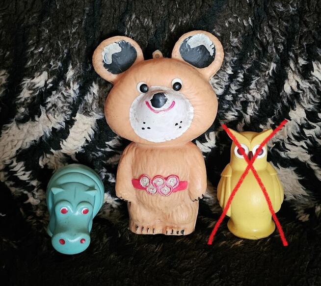 Sprzedam gumowe piszczki - zabawki z czasów PRL. Hipopotam - 15zł Misiu - 35zł
