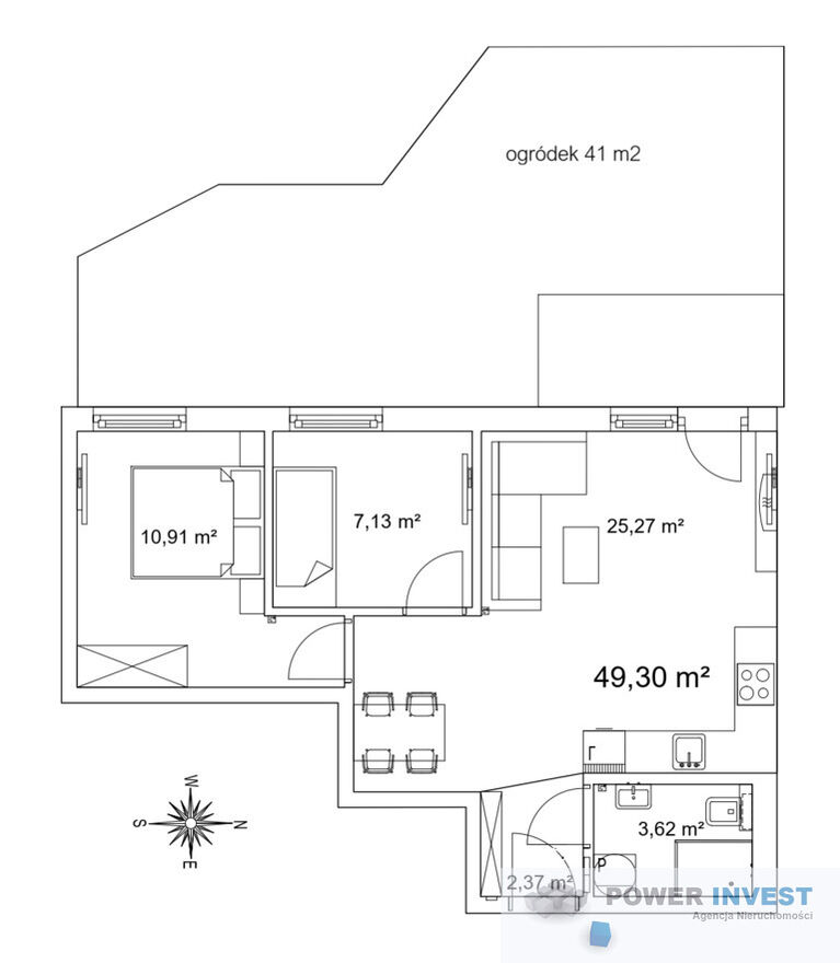 Mieszkanie znajduje się na parterze. Lokal ma powierzchnię 49,3 m2
