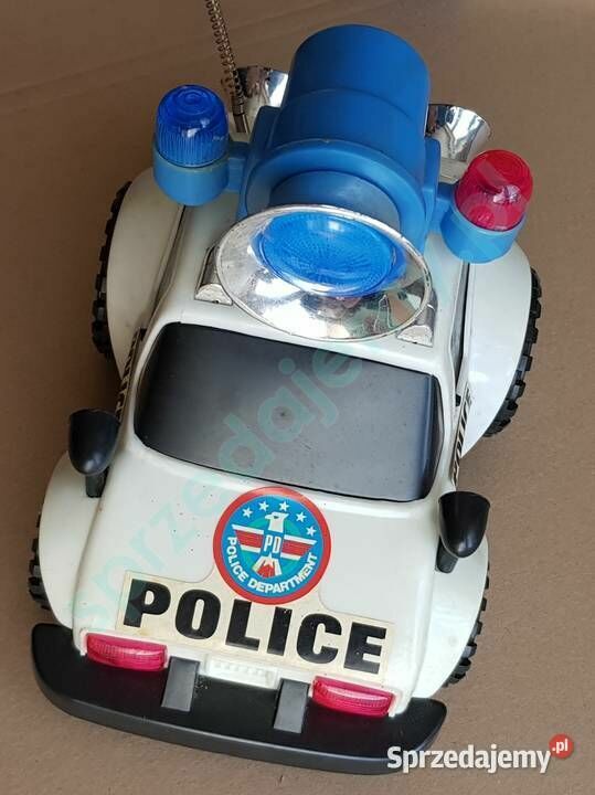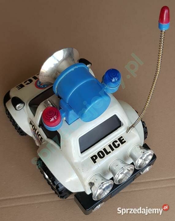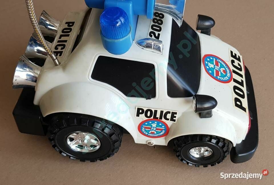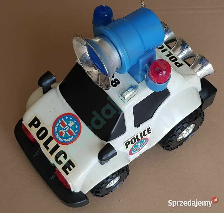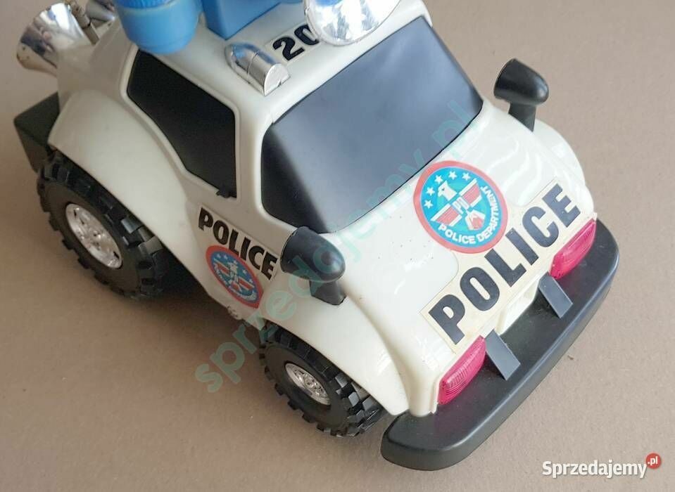 Na sprzedaż zabawkowy samochód policyjny typu terenowego, z dużym niebieskim głośnikiem oraz sygnalizacją świetlną i dźwiękową. Wykonany z solidnego plastiku, w stylistyce amerykańskiej policji – z nadrukami „POLICE” i „POLICE DEPARTMENT”. DARMOWA WYSYŁKA Samochód idealny dla młodszych dzieci – sprawdzi się zarówno do zabawy w domu, jak i na zewnątrz. Efekty świetlne i dźwiękowe przyciągają uwagę i pobudzają wyobraźnię. Stan dobry, wszystkie elementy kompletne. Możliwe drobne ślady użytkowania. Wymiary (orientacyjnie): Długość: ok. 25 cm Szerokość: ok. 15 cm Wysokość: ok. 17 cm (z głośnikiem) DARMOWA WYSYŁKARobert