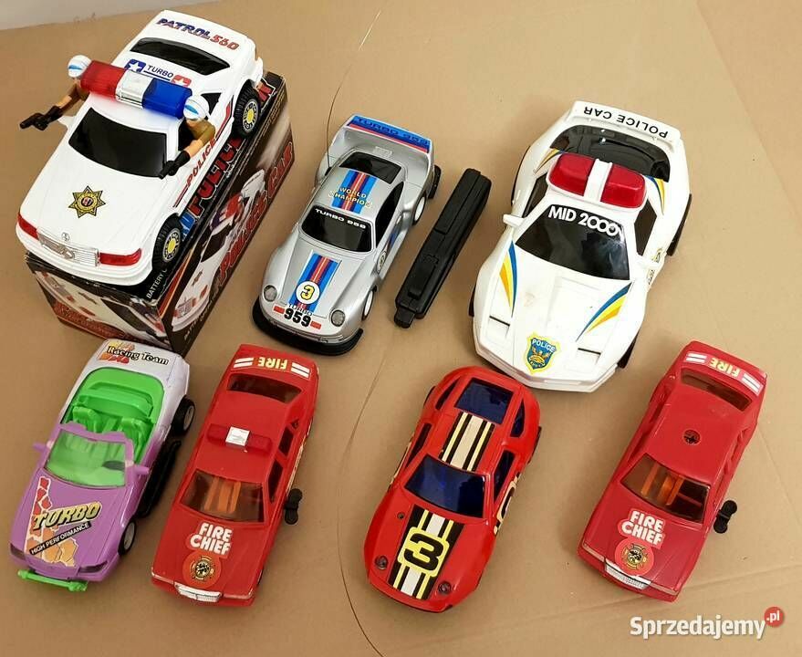 Zestaw samochodzików zabawkowych – Policja, Straż, Wyścigi – 7 sztuk Na sprzedaż wyjątkowy zestaw 7 samochodzików zabawkowych, idealnych dla młodych fanów motoryzacji oraz kolekcjonerów. W skład zestawu wchodzą: 2 samochody policyjne (w tym jeden na pudełku, z efektami świetlnymi i bronią na dachu) 2 samochody strażackie „Fire Chief” 1 sportowy samochód wyścigowy z numerem „3” 1 klasyczny model rajdowy „Turbo 999” 1 kolorowy kabriolet „Racing Team Turbo” Stan: Używane, ale w bardzo dobrym stanie wizualnym. Samochody nie noszą większych śladów zużycia. Niektóre z nich posiadają interaktywne elementy jak światła czy dźwięki (wymagają sprawdzenia/zasilania bateriami). Materiał: Plastik Długość modeli: ok. 15–20 cm każdy Idealne jako: - zabawki dla dzieci. - elementy do dekoracji pokoju dziecięcego. - uzupełnienie kolekcji modeli. Zainteresowanych proszę o kontakt.Robert