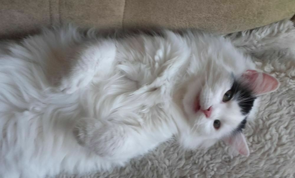 Chmurka i Funio to rodzeństwo kotów z dłuższym futerkiem. Mają 10 miesięcy, Chmurka to dziewczynka z białym płaszczykiem i czarnym ogonkiem, braciszek ma więcej czarnych wzorków. Ich sierść nie wymaga specjalnej pielęgnacji, wystarczy szczotkowanie jak u innych kotów.Kociaki były wyrzucone na działkę, zaniedbane trafiły do lecznicy i domu tymczasowego. Dziś są już zdrowe, zadbane, wykastrowane i zaszczepione.