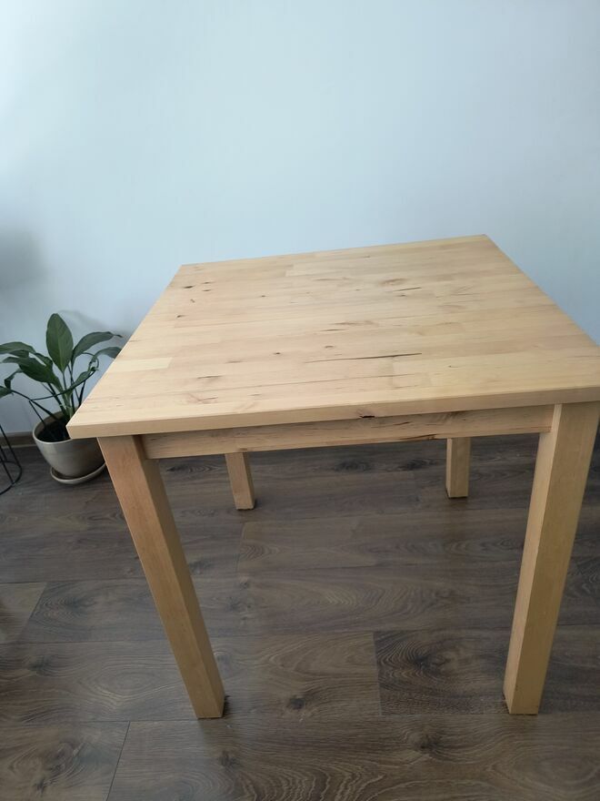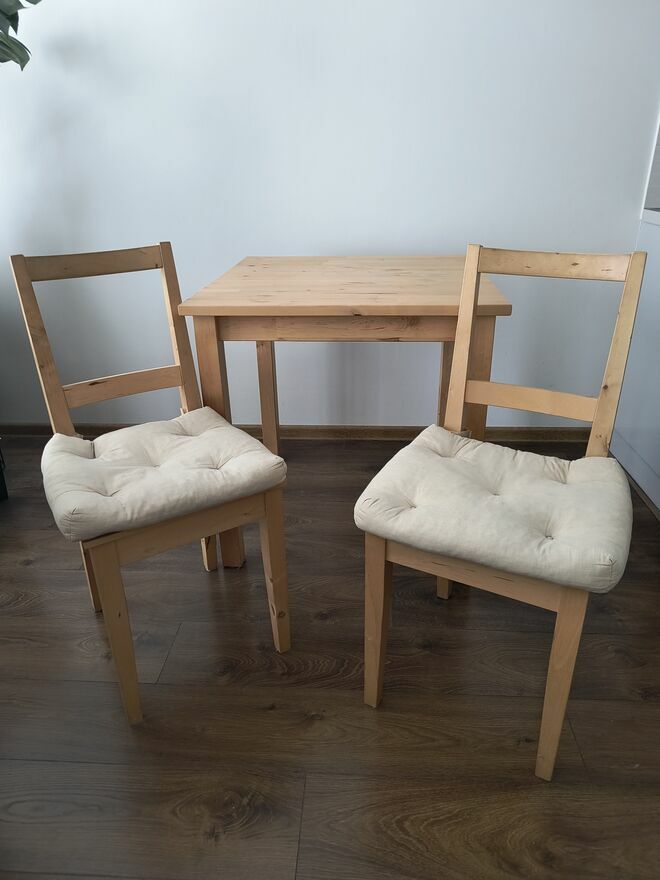 Sprzedam stół NORDEN o wymiarach 74 cm x 74 cm, wys. 74 cm. i dwa krzesła ( w bardzo dobrym stanie).ODBIÓR WŁASNY
