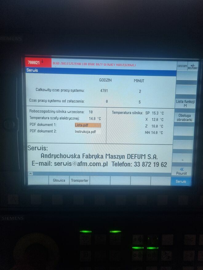 (Bład wyswietlony na zdjeciu z przebiegim nie wynika z uszkodzenia Tokarki tylko wyswietla sie do mementu nie włąćżenia hydrauliki wrzeciennika - tak taką sytałację ta tokarka komunikuje - jest to normalnie i znika po pełnym załaczeniu )