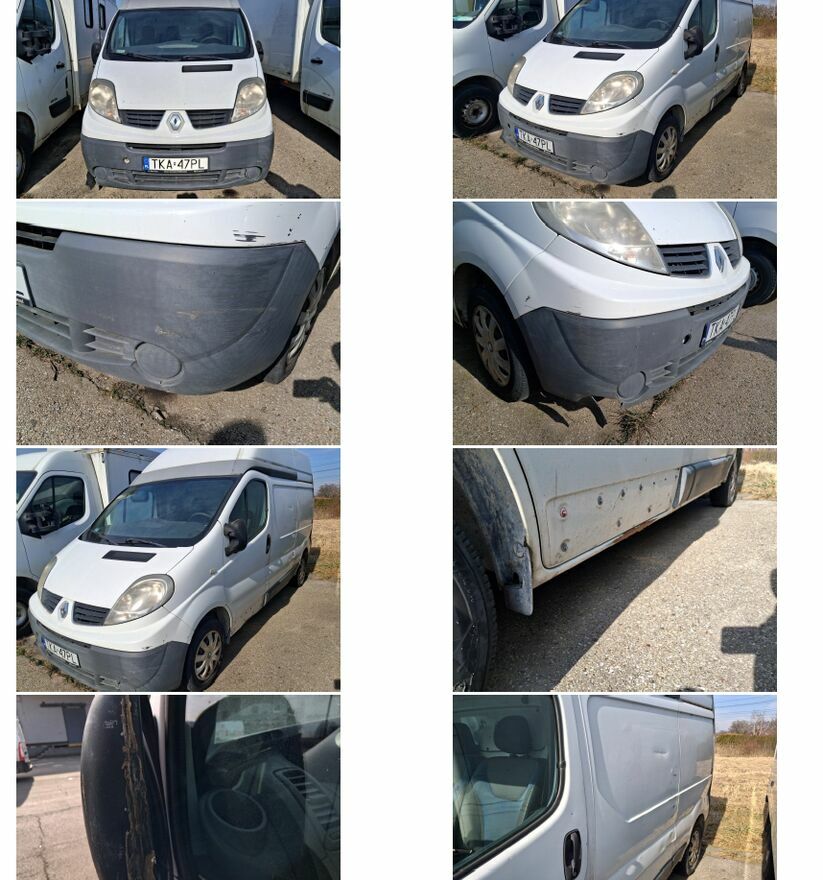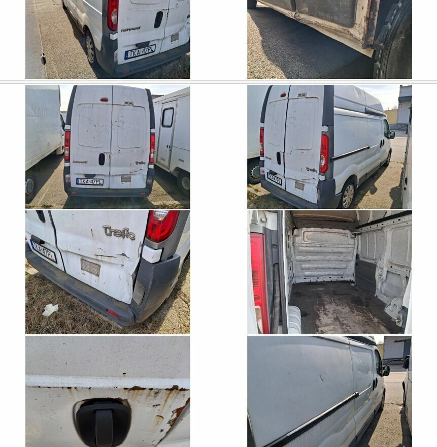 1. Uszkodzony i niesprawny samochód Renault Trafic, rok produkcji 2011, nr rejestracyjny: TKA 47PL, nr VIN: VF1FLBMD6BY374403, cena wywoławcza: 5.000,00 zł;