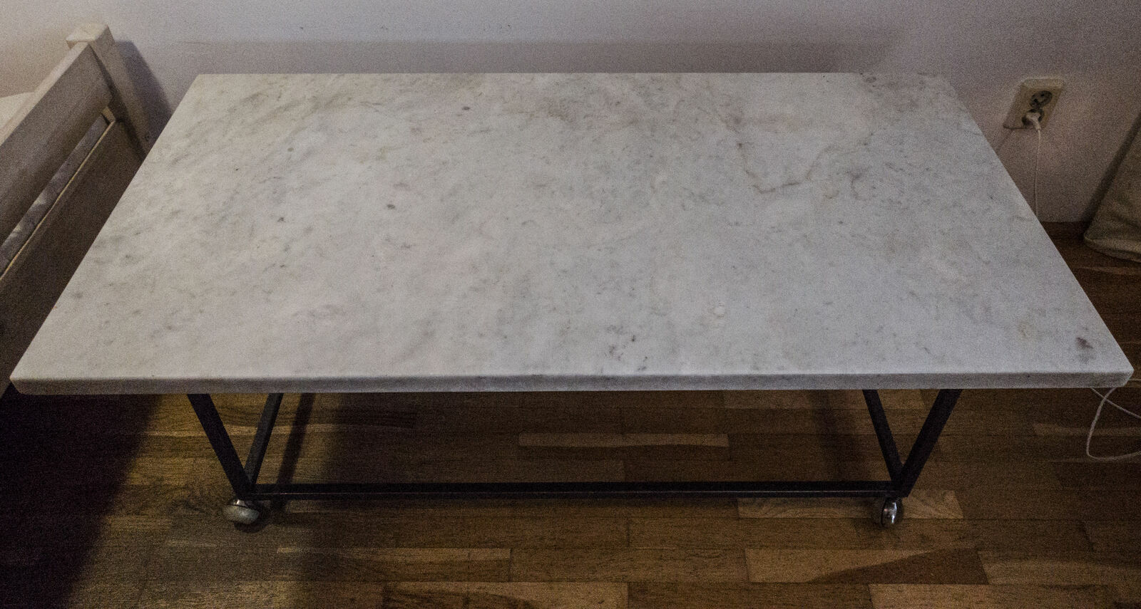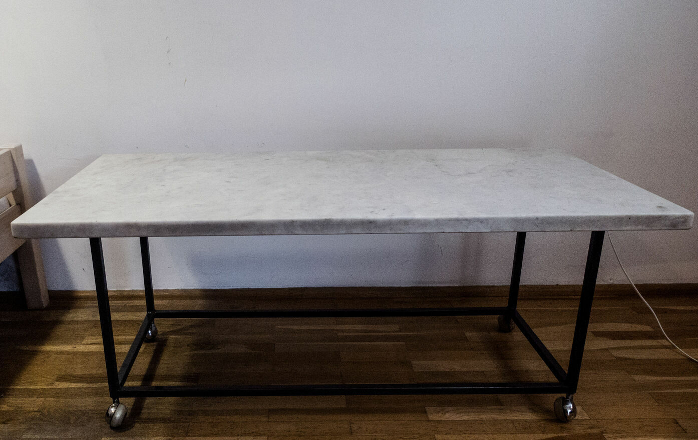 do sprzedania stół kawowy z blatem marmurowym na stelażu metalowym ;wymiary blatu : dł 120 cm ,szer. 60 cm ,grubość 3 cm ,wysokość stołu 50 cm ; stół ma 50 lat , blat jest zdejmowany ,stół ma nogi na kółkach ;odbiór własny w Krakowie