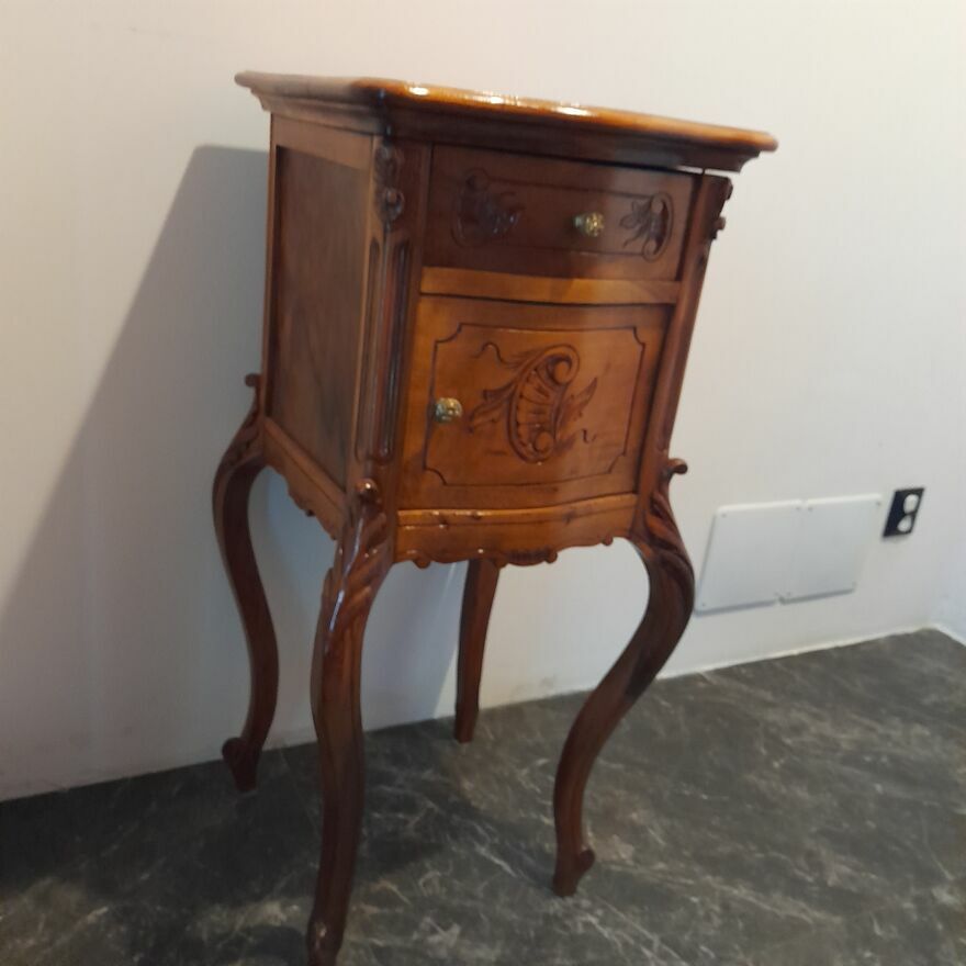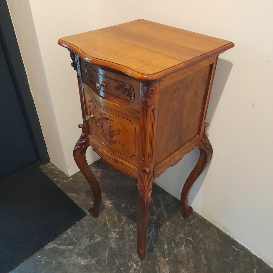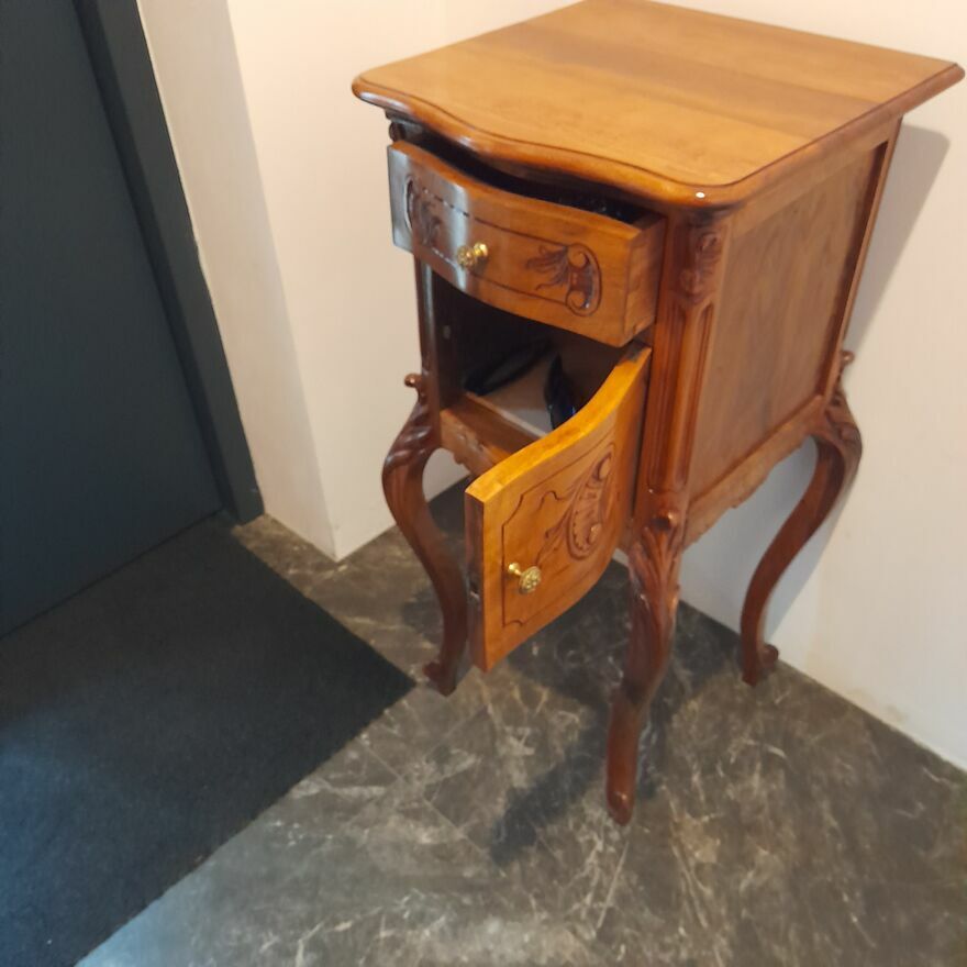 Sprzedam stolik styl ludwikowski drewniany orzechStolik ręcznie, estetycznie odnowiony położona profesjonalnie w całość położona politura posiada szufladę i drzwiczki otwierane - wszystko sprawne
