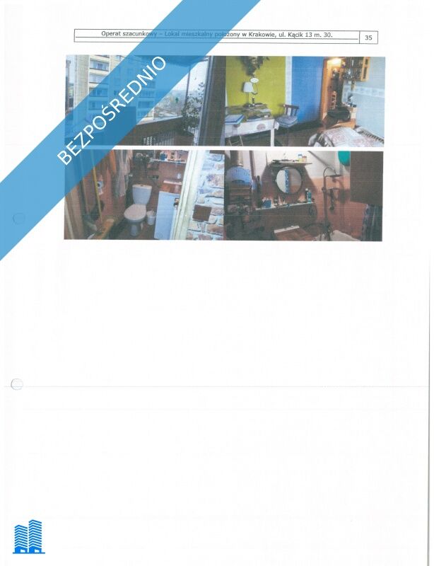 Syndyk masy upadłości osoby fizycznej sprzeda w drodze pisemnego konkursu ofert udział w wysokości 1/6 w spółdzielczym własnościowym prawie do lokalu mieszkalnego, o powierzchni użytkowej 37,77 m2, oznaczonego numerem 30, mieszczącego się w budynku numer 13 w Krakowie przy ulicy Kącik, gmina Kraków, powiat krakowski.Przedmiotowy lokal nr 30 położony jest na 8 piętrze budynku mieszkalnego wielorodzinnego. Składa się z dwóch oddzielnych pokoi, oddzielnej i jasnej kuchni, przedpokoju, łazienki. Lokal posiada również balkon oraz przynależne pomieszczenie gospodarcze o powierzchni 7,94 m2.