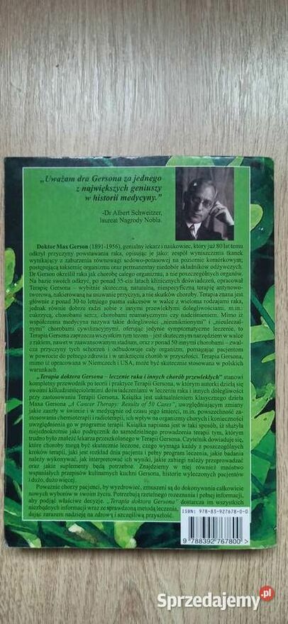 Książka pt. "Terapia doktora Gersona - leczenie raka i innych chorób przewlekłych"Autor: Charlotte Gerson, Beata Bishop