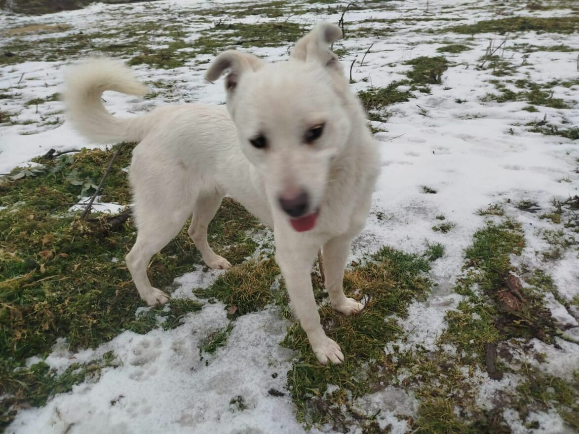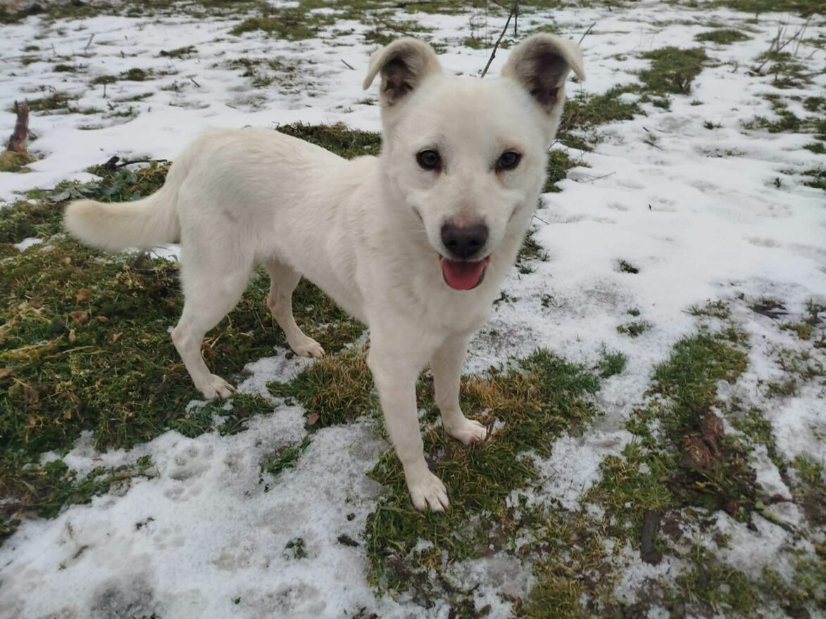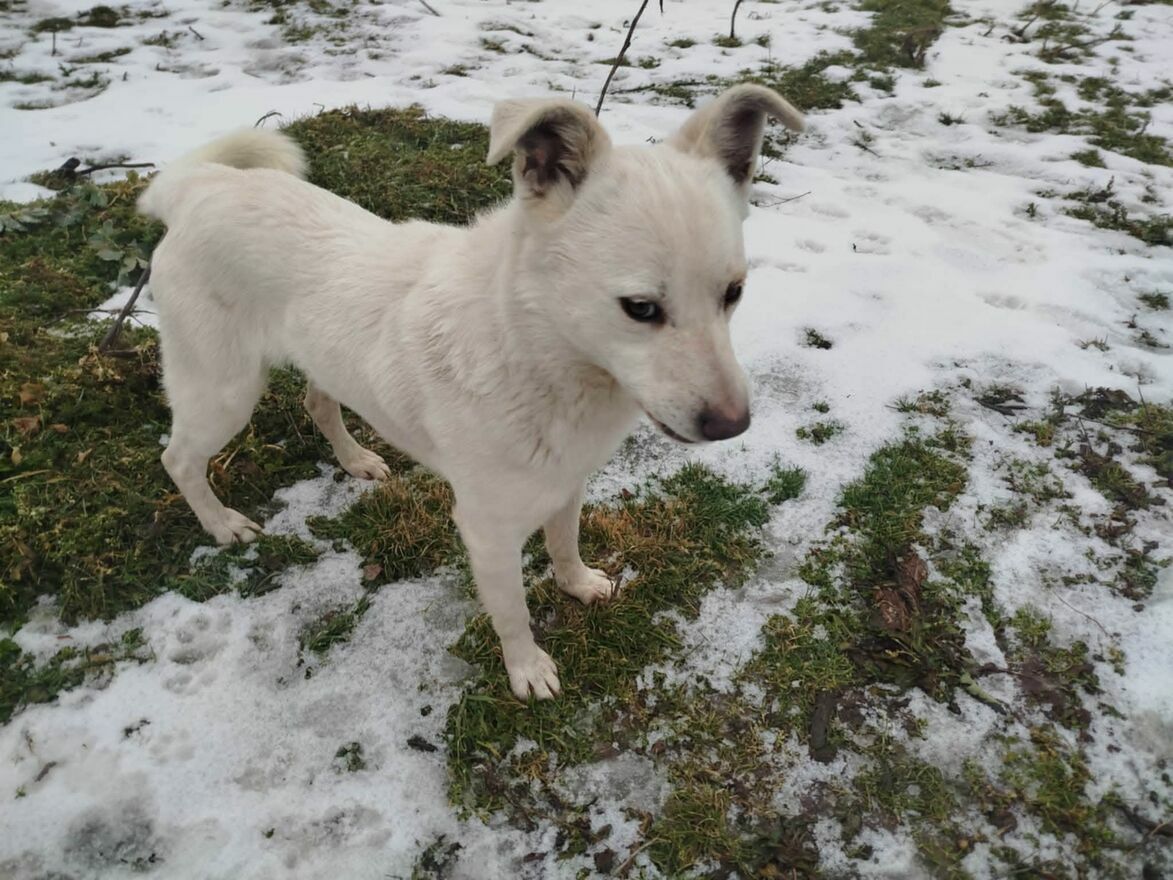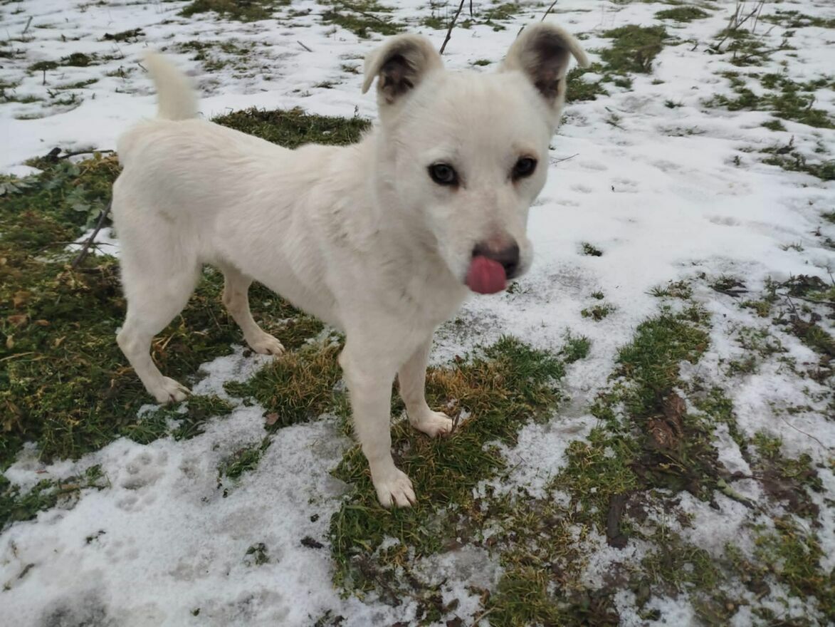 Ten biały przystojniak to Lordzik piesek, którego ktos porzucił zostawił samego bez opiekiBardzo długo sie błąkał byl widziany w różnych miejscach, ale gdyby przyszły mrozy zimne noce Lordzik opadał z sił był głodny nie miał gdzie sie schtonić