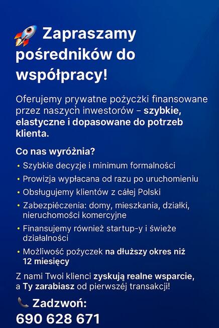 Zapraszamy pośredników do współpracy! Oferujemy prywatne pożyczki finansowane przez naszych inwestorów – szybkie, ...