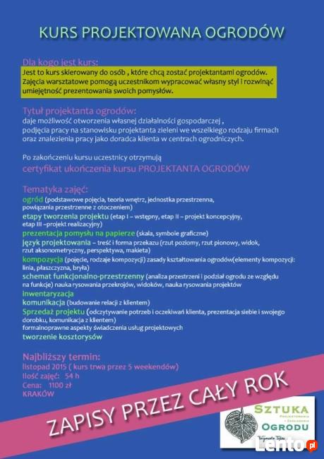 Opis oferty: Dla kogo jest kurs: Jest to kurs skierowany do osób , które chcą zostać projektantami ogrodów. Zajęcia ...