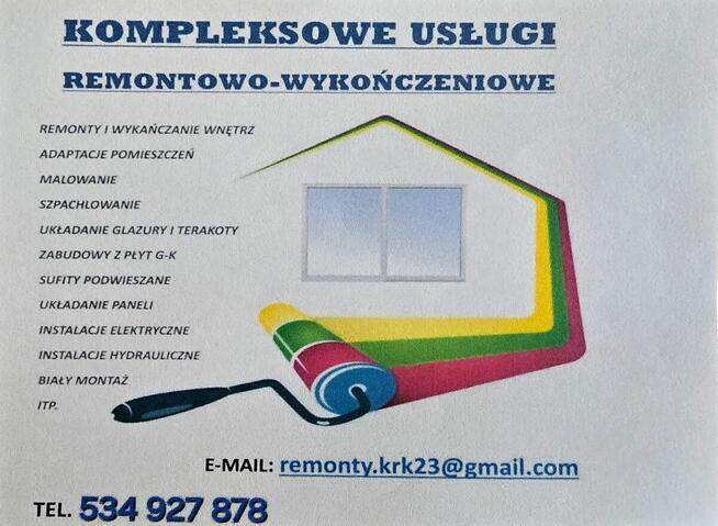 Oferuję usługi wykończeniowe i remontowe na terenie Krakowa oraz okolicznych miejscowości. Specjalizuję się w: - ...