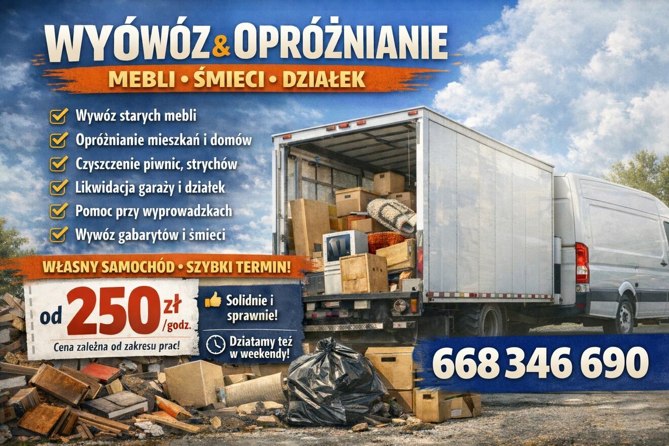 OFERTA USŁUG – WYWÓZ, OPRÓŻNIANIE, WYPROWADZKIOferuję profesjonalne usługi związane z wywozem oraz opróżnianiem nieruchomości.