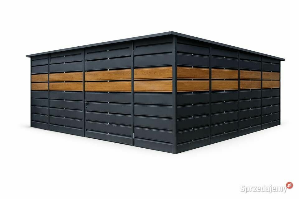 Nowoczesna wiata zabudowana ażurami o wymiarach 5x7 m w kolorze antracyt i złoty dąb Konstrukcja w całości wykonana z profilu zamkniętego ocynkowanego 30x30.Okucia boczne i dachowe wliczone w cenę.
