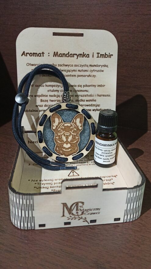 Kupujesz kompletny zestaw : Drewniana zawieszka + Eleganckie drewniane pudełeczko + Olejek zapachowy