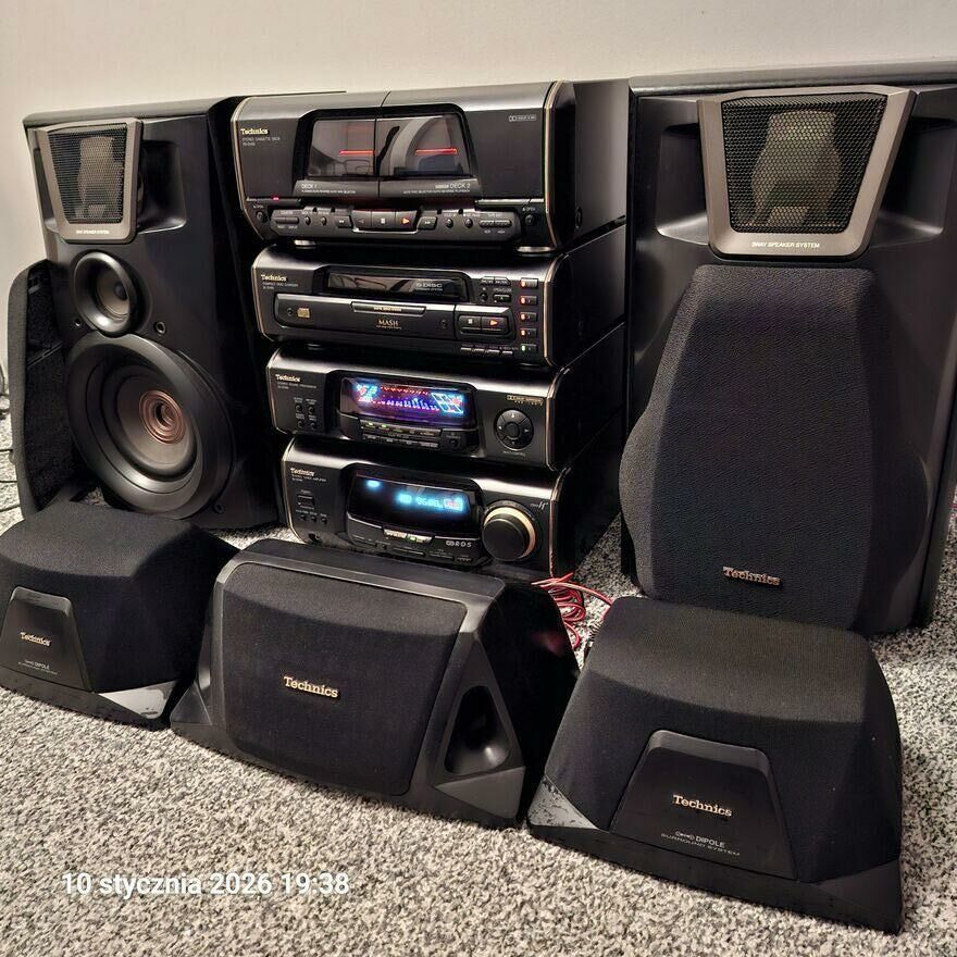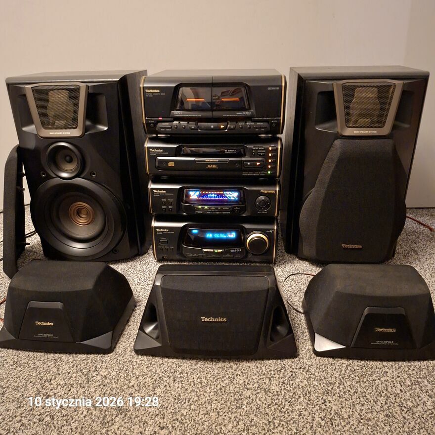 Wieża Technics z pięcioma kolumnami w tym dwie główne 3-drożne. Składa się z podwójnego magnetofonu z funkcją nagrywania, odtwarzacza dysków ze zmieniarką na 5 cd, radia fm z RDS am i wzmacniacza z wieloma opcjami odtwarzania Dolby Surround Pro Logic. Zestaw jest w bardzo dobrym stanie. Kontakt:502 - pokaż numer telefonu -Sprawdź zainteresowanie tym ogłoszeniem