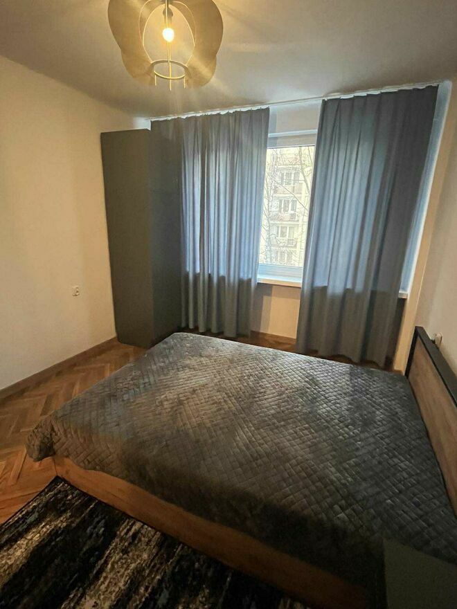 Mieszkanie zostało zaaranżowane dla pary, sypialnia z dużym łóżkiem.