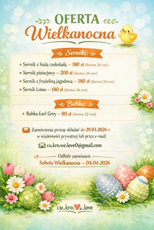 Zapraszam do składania zamówień na świąteczne wypieki. Oferta, zdjęcia wypieków dostępne są na profilu Instagram: ci.kro.we_love lub FB: cu.kro.welove. Odbiór Kraków AzoryMonika