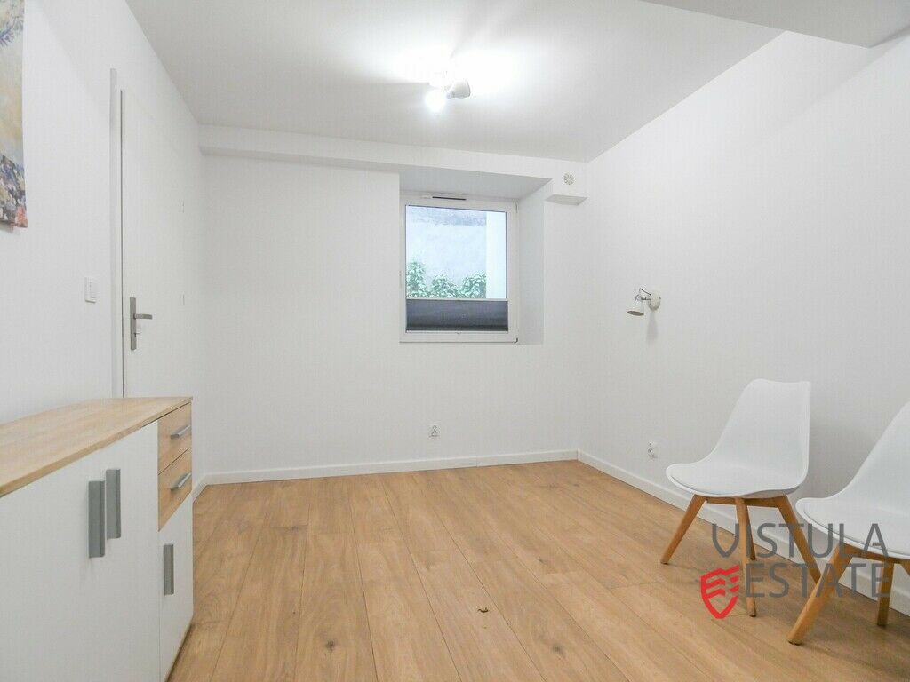 Batorego w Krakowie, z widokiem na spokojny, nieuczęszczany ogródek.