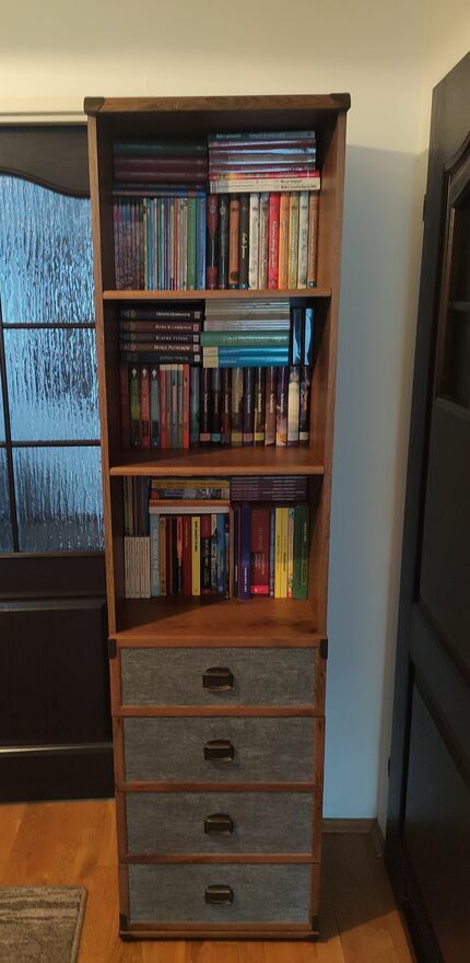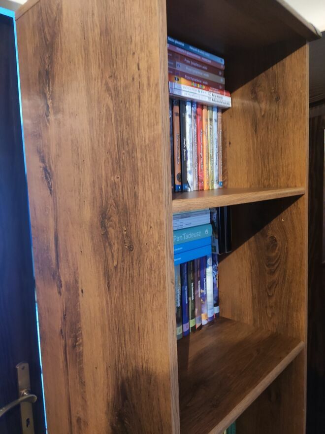 Konstrukcja: 3 otwarte półki oraz 2 półki zamykane na dole szafki.