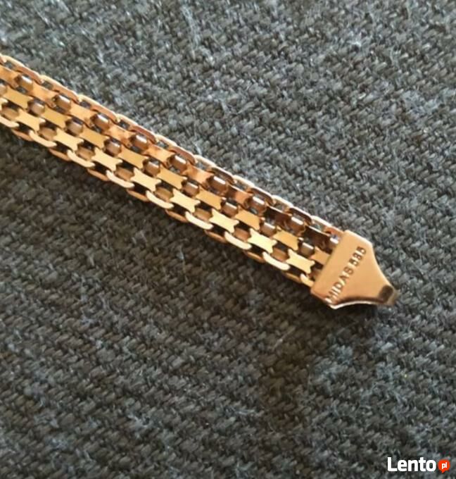 Złota bransoletka Midas próba 585 dług. 19cm szer. 4.8 mm waga 8.1gBrak możliwości kontaktu przez formularz z ogłoszeniodawcą, ponieważ to ogłoszenie jest archiwalne.